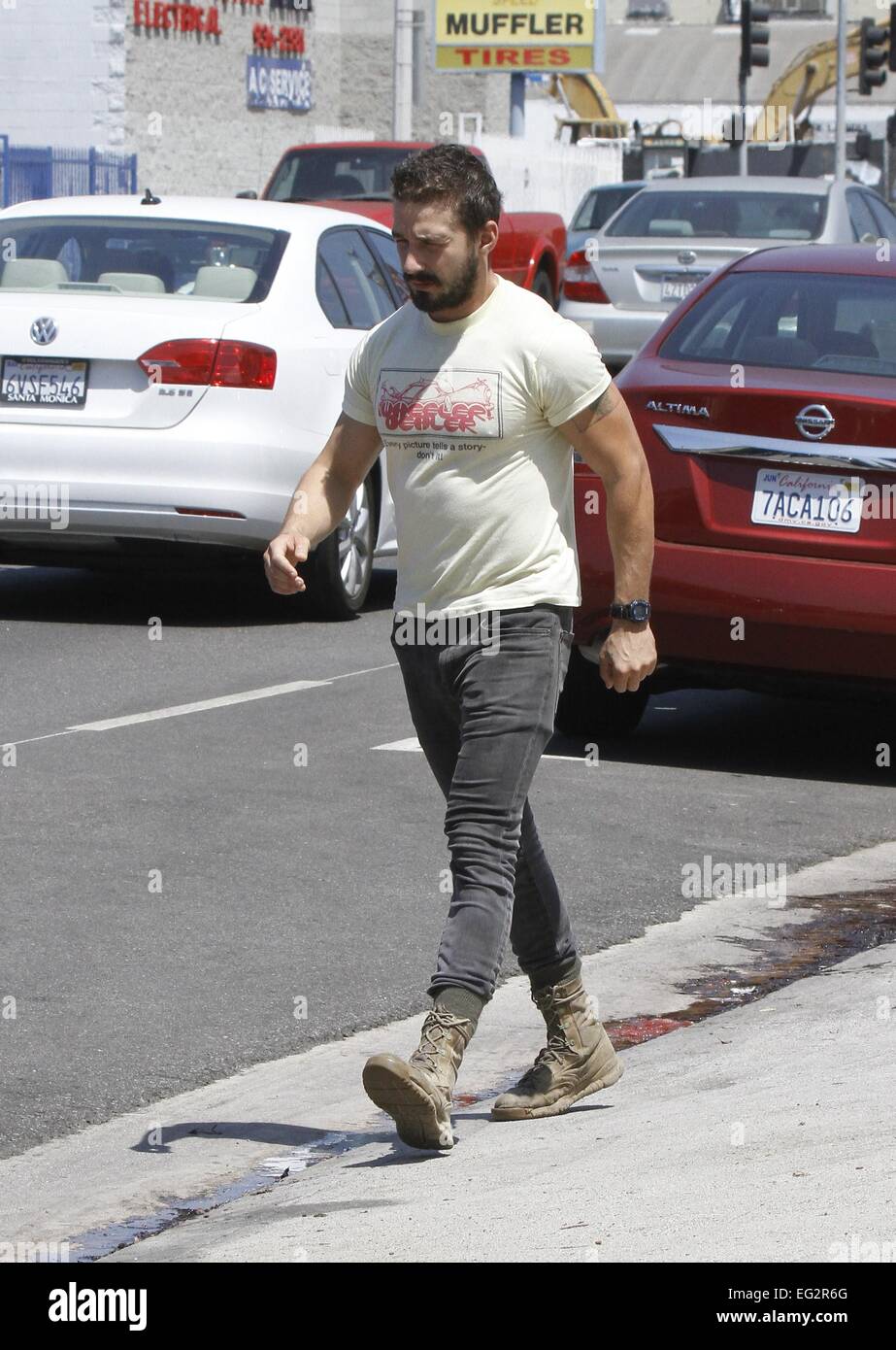 Shia Labeouf Returning To His Vehicle Caught Wearing A T Shirt That Says Every Picture Tells A Story Don T It Featuring Shia Labeouf Where Los Angeles California United States When 12 Aug